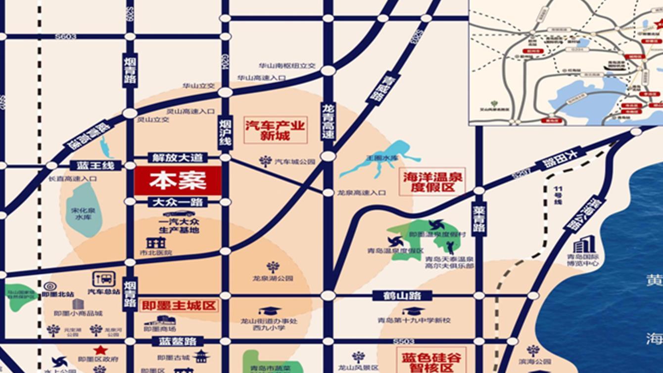 機場:距青島流亭機場約25公里、距膠東機場約30公里,連通全國,暢達(dá)世界。