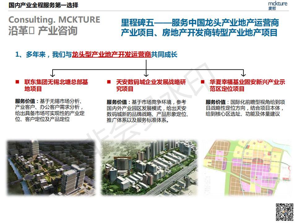 長三角招商網(wǎng)&麥哲(中國)為中國各級(jí)政府、管委會(huì)、平臺(tái)公司、產(chǎn)業(yè)地產(chǎn)投資者等客戶提供政府產(chǎn)業(yè)培訓(xùn)考察、產(chǎn)業(yè)調(diào)查研究、產(chǎn)業(yè)規(guī)劃、區(qū)域戰(zhàn)略咨詢、產(chǎn)業(yè)新城戰(zhàn)略定位、產(chǎn)業(yè)園發(fā)展戰(zhàn)略規(guī)劃、區(qū)域開發(fā)模式和開發(fā)策略、產(chǎn)業(yè)招商、產(chǎn)業(yè)運(yùn)營、產(chǎn)業(yè)基金等業(yè)務(wù)。在多年的專業(yè)服務(wù)實(shí)踐中,和中國社科院、復(fù)旦大學(xué)、中歐國際工商學(xué)院等知名高校和研究機(jī)構(gòu)有長期戰(zhàn)略合作,擁有豐富的知識(shí)案例庫、互聯(lián)網(wǎng)產(chǎn)業(yè)平臺(tái)、產(chǎn)業(yè)企業(yè)及運(yùn)營數(shù)據(jù)庫、產(chǎn)業(yè)研究院等,致力于為客戶提供蕞有價(jià)值的產(chǎn)業(yè)全程服務(wù)。
