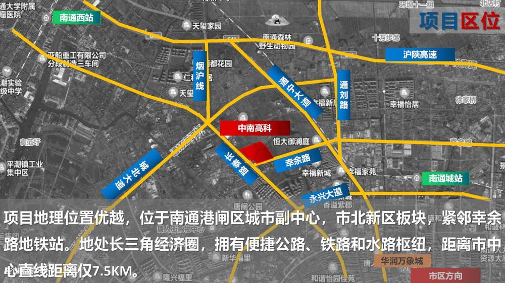 高鐵:距滬通鐵路南通西站7.8公里(22分鐘),距南通城戰(zhàn)5公里(12分鐘);