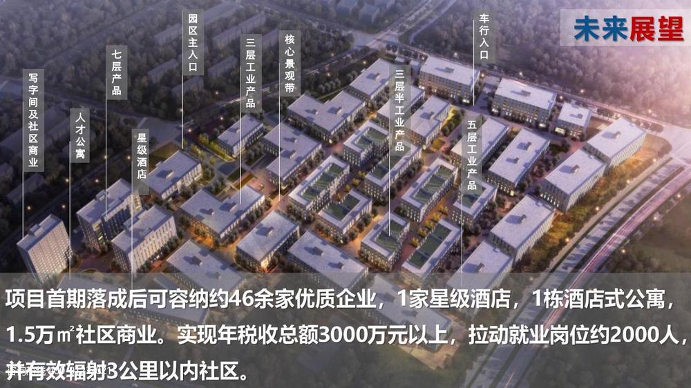項(xiàng)目首期落成后可容納約46余家優(yōu)質(zhì)企業(yè),1家星級(jí)酒店,1棟酒店式公寓,1.5萬平方米社區(qū)商業(yè)。實(shí)現(xiàn)年稅收總額3000萬元以上,拉動(dòng)就業(yè)崗位約2000人,并有效輻射3公里以內(nèi)社區(qū)。