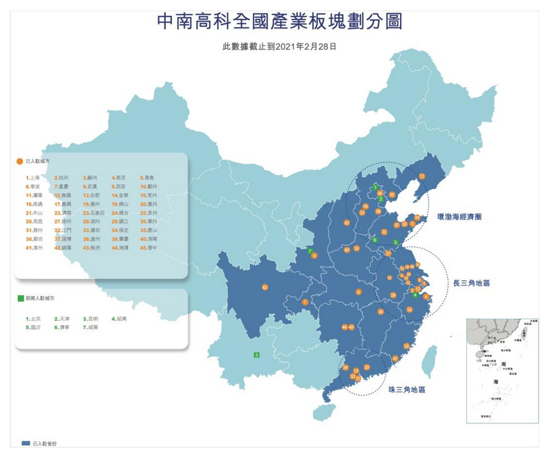 數(shù)據(jù)顯示,截至2020年底,中南高科共計擁有1000多名專業(yè)的招商人士組成了規(guī)?;绑w系化的招商團隊,擁有全國超90個招商中心,確保其能夠深度接觸并梳理全國各地的產(chǎn)業(yè)資源,做好異地導入以及產(chǎn)業(yè)鏈構建。