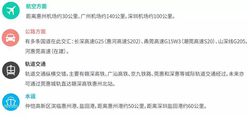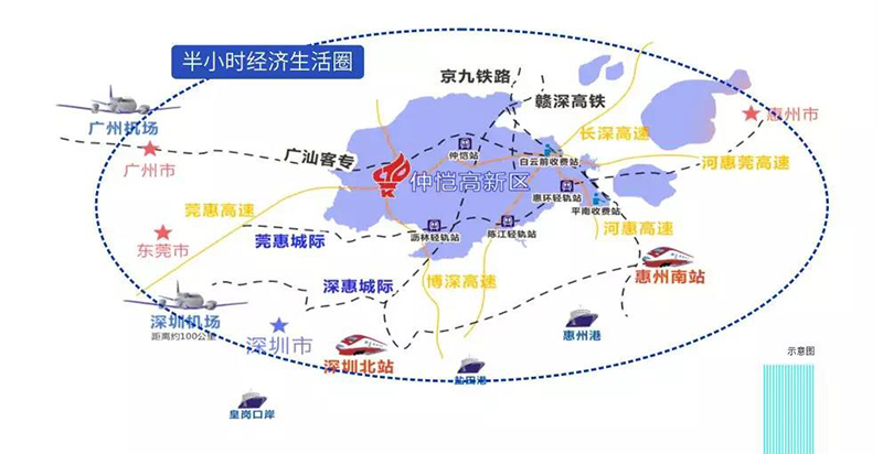 地處“仲愷高新區(qū)” 和“357創(chuàng)新產(chǎn)業(yè)帶” 兩大產(chǎn)業(yè)發(fā)展地帶;南靠深圳,西接?xùn)|莞,毗鄰廣州,是深莞惠的腹地。