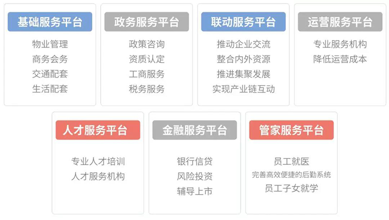 項(xiàng)目由中南高科開(kāi)發(fā),后期企業(yè)進(jìn)駐之后,物業(yè)管理也是由中南高科提供一站式管家服務(wù)體系,為企業(yè)提供長(zhǎng)期穩(wěn)定的發(fā)展環(huán)境和政策支持,加速培育區(qū)域整體的產(chǎn)業(yè)生態(tài)環(huán)境。中南高科后期運(yùn)營(yíng)服務(wù)包含了七大運(yùn)營(yíng)服務(wù)平臺(tái),保證入園企業(yè)無(wú)憂(yōu)。