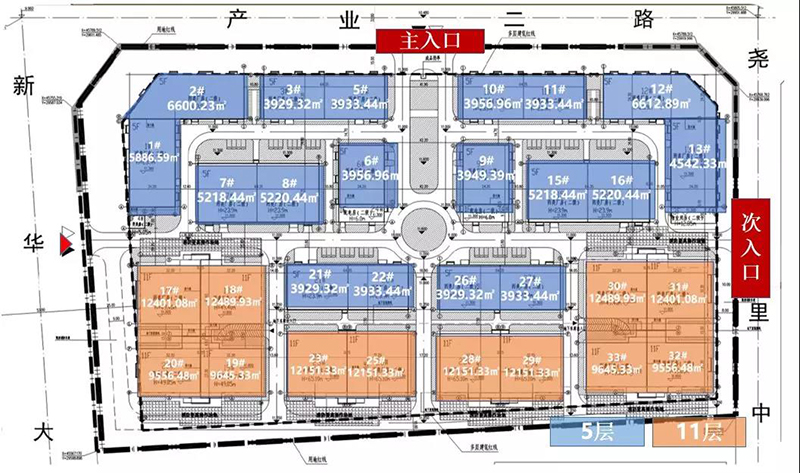 項(xiàng)目一期總共有34棟單體建筑,包括4棟配套用房(4#、14#、24#、34#)與30棟框架廠(chǎng)房。