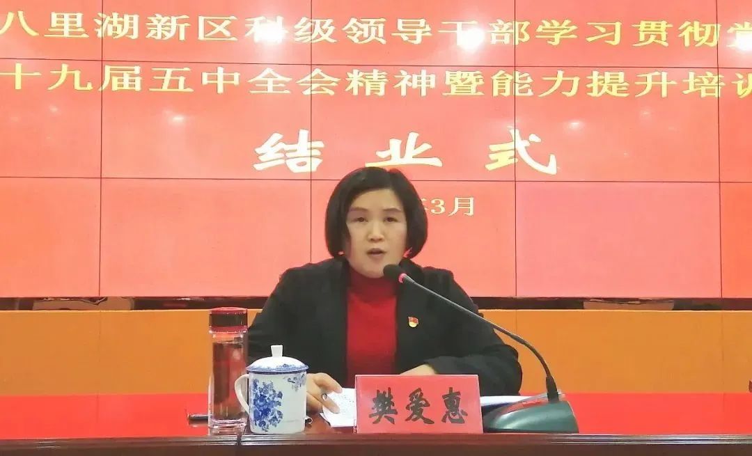 在21日下午的結(jié)業(yè)式上,受新區(qū)黨工委書(shū)記劉武愛(ài)委托,新區(qū)黨工委委員、紀(jì)檢監(jiān)察工委書(shū)記樊愛(ài)惠做了結(jié)業(yè)講話,她表示,在“十四五”規(guī)劃的開(kāi)局之年,我們更加需要勤學(xué)好學(xué),增強(qiáng)本領(lǐng);在中國(guó)建黨一百周年,我們更加需要為民解難,為黨分憂;在推動(dòng)新區(qū)高質(zhì)量跨越式發(fā)展的關(guān)鍵之年,我們更加需要?jiǎng)?chuàng)新理念,攻堅(jiān)克難。希望大家在今后的工作中,更加自覺(jué)地運(yùn)用黨的創(chuàng)新理論武裝頭腦、指導(dǎo)實(shí)踐,全面落實(shí)市委、市政府決策部署,嚴(yán)格按照黨工委、管委會(huì)各項(xiàng)工作要求,全力開(kāi)展“六個(gè)年”行動(dòng),把賽城湖新城建設(shè)成為“生態(tài)新城、文化新城、智慧新城、品質(zhì)新城”,努力推進(jìn)八里湖新區(qū)高質(zhì)量跨越式發(fā)展,確?!笆奈濉遍_(kāi)好局,以優(yōu)異成績(jī)向建黨一百周年獻(xiàn)禮?。ň沤死锖聟^(qū)供稿)