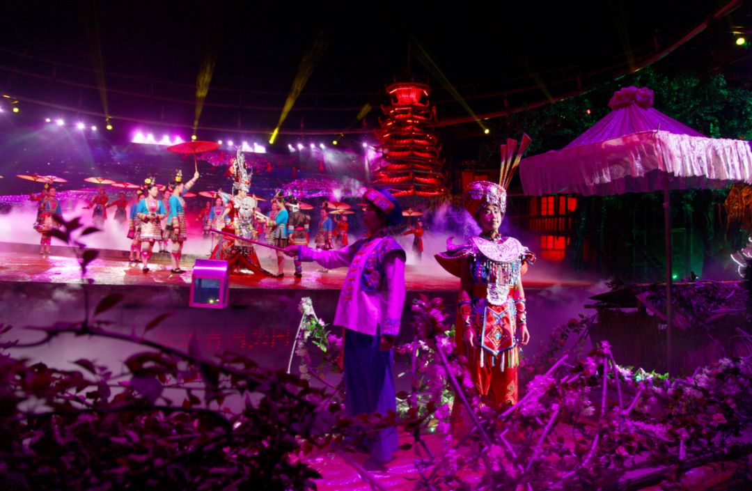 《坐妹》是首部侗族風(fēng)情大型實(shí)景演出,演出通過(guò)“走姑娘”“鬧姑娘”等四個(gè)篇章,將侗族地區(qū)豐富多彩的傳統(tǒng)文化元素比如耶歌文化、婚戀文化傾情展現(xiàn),同時(shí)與全國(guó)蕞大蕞復(fù)雜的梯式LED顯示屏以及高科技電腦燈光相結(jié)合,演出效果如夢(mèng)幻世界一般,凡觀賞過(guò)此演出的人,無(wú)不嘆為觀止!