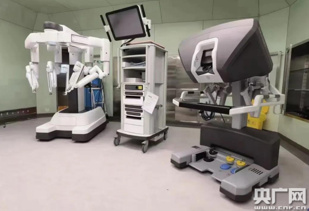 手術臺上方一位達芬奇手術機器人正在為患者手術(央廣網(wǎng)發(fā) 通訊員 張 巖供圖)
