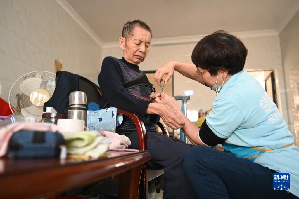 11月25日,長(zhǎng)護(hù)險(xiǎn)居家護(hù)理服務(wù)機(jī)構(gòu)晉江鄰鹿養(yǎng)老服務(wù)有限公司護(hù)理員林銀花在福建晉江梅嶺街道蔡厝社區(qū)的老人家里開(kāi)展定期居家護(hù)理服務(wù)。新華社記者 林善傳 攝