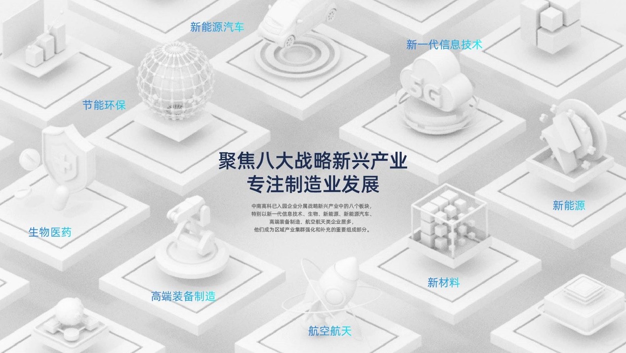 中南高科的已入園企業(yè),80%以上為制造業(yè)企業(yè),同時中南高科尤其注重八大戰(zhàn)略新興產(chǎn)業(yè)的企業(yè)發(fā)展,即以新一代信息技術(shù)、生物、新能源、新能源汽車、高端裝備制造、航空航天類制造業(yè)。