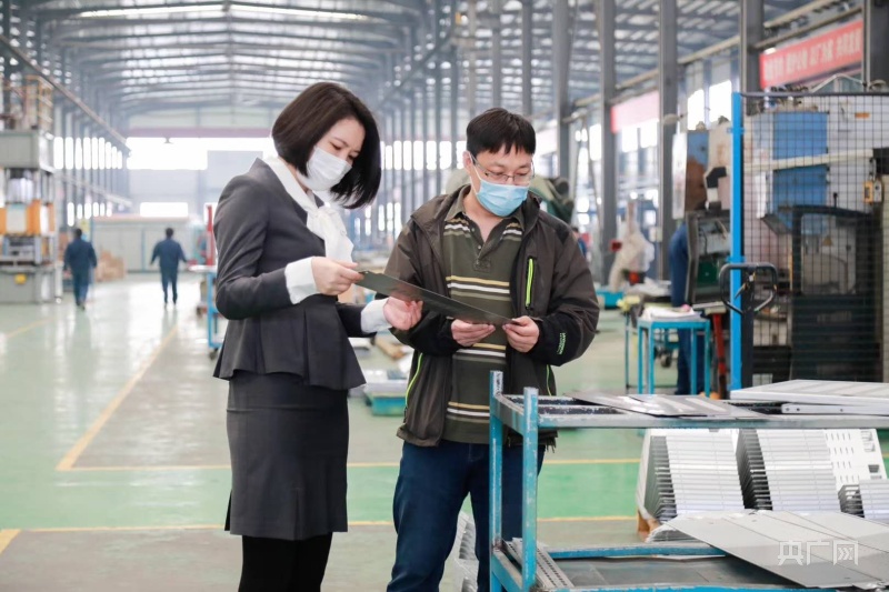 針對智能制造企業(yè)“收賬難”,浙商銀行客戶經(jīng)理來到浙江新德寶機械有限公司,了解貨款回籠情況。(央廣網(wǎng)發(fā) 浙商銀行供圖)